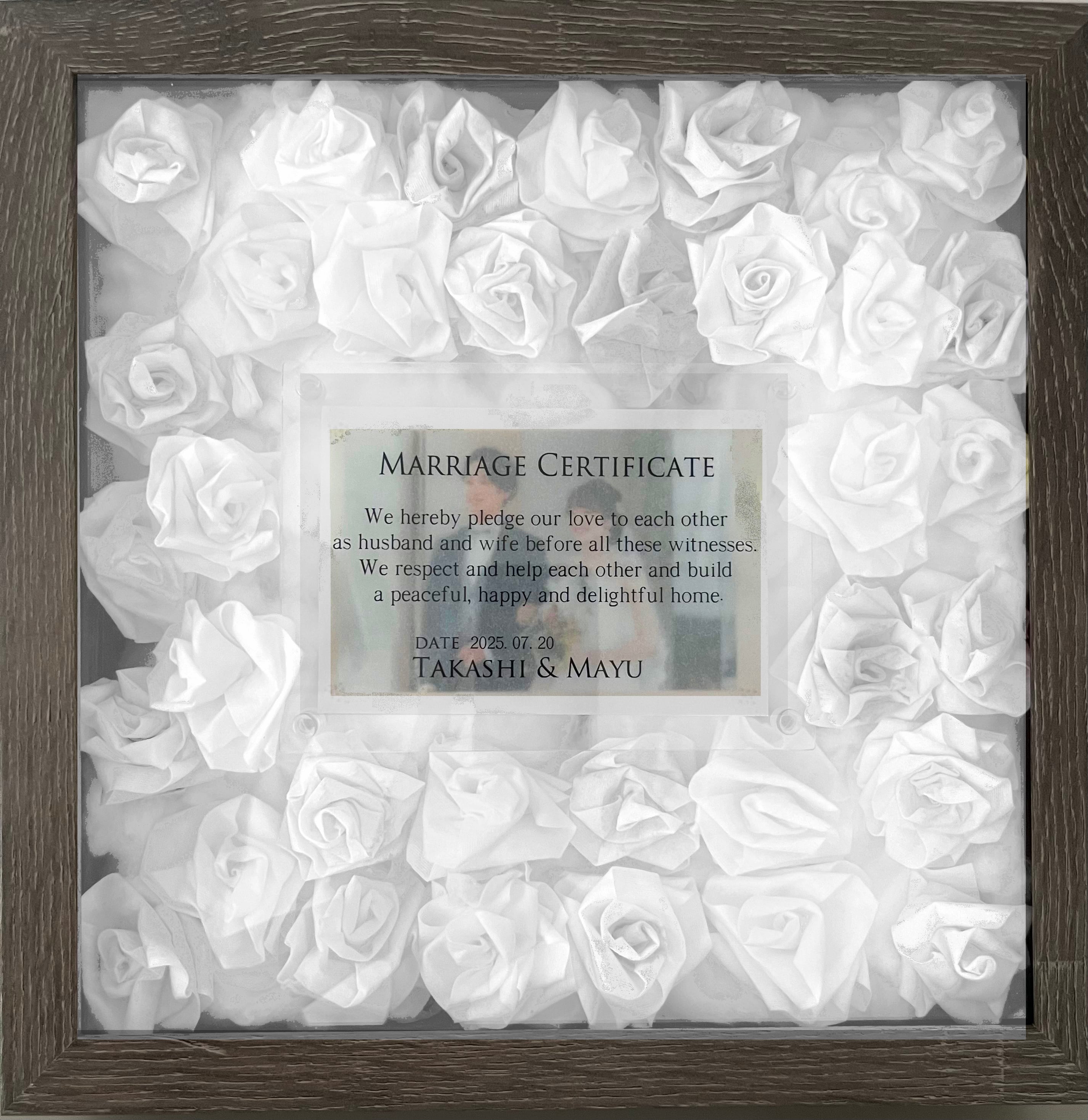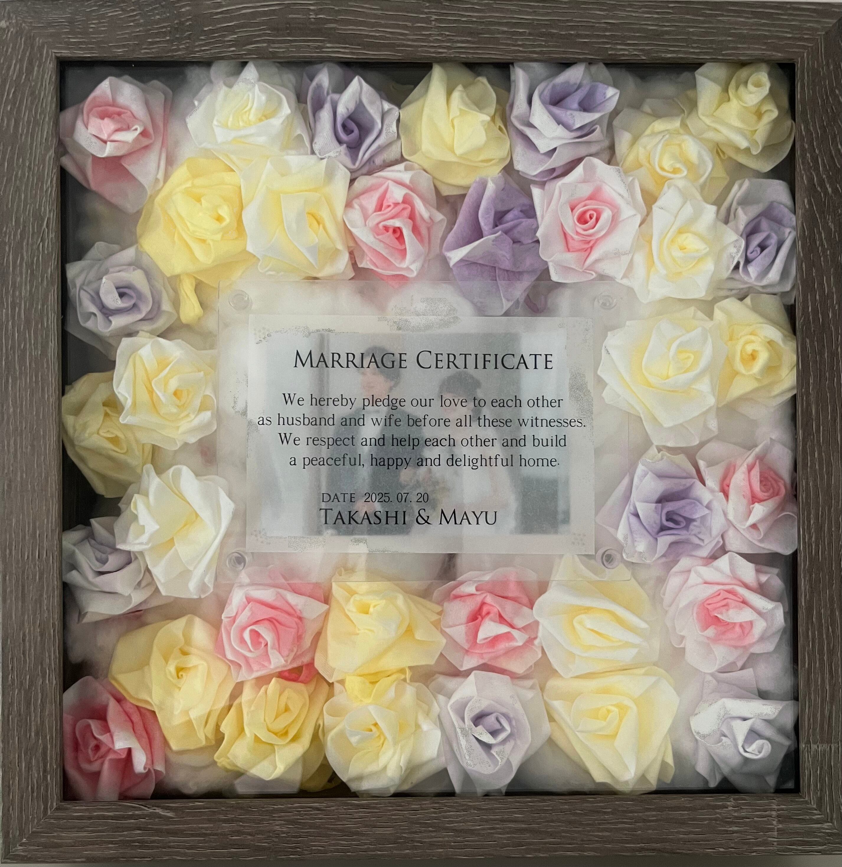 倉敷コットンが贈る「華の音 HANANO-NE 結婚証明書」は、40個のコットンフラワーと選べるアロマで、セレモニーを華やかに彩る特別な証明書です。